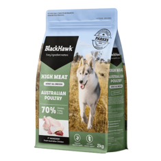 Black Hawk High Meat Australian Poultry is formulated to meet the nutritional levels established by the Association of American Feed Control Officials (AAFCO) Dog Food Nutrient Profiles for All Life Stages except for growth of large sized dogs (30kg or more as an adult).